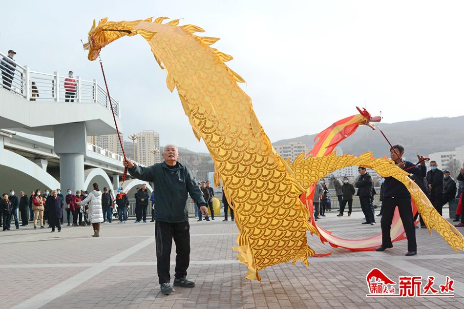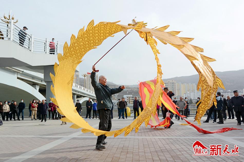 3月1日,两位老人在秦州区双桥藉河大桥下的小广场上舞龙。初春时节,暖阳和煦,市民们闲暇时来到藉河岸边休闲锻炼,乐享春日时光。 新天水记者孙镇 摄