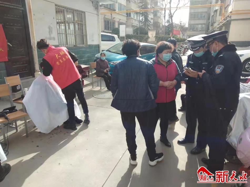 活动当中,秦州公安分局北关派出所的民警和枣园小区党支部党员利用居民排队的空闲时间,为居民发放了“反电诈”宣传资料,同时为居民讲解并安装了“国家反诈APP”。