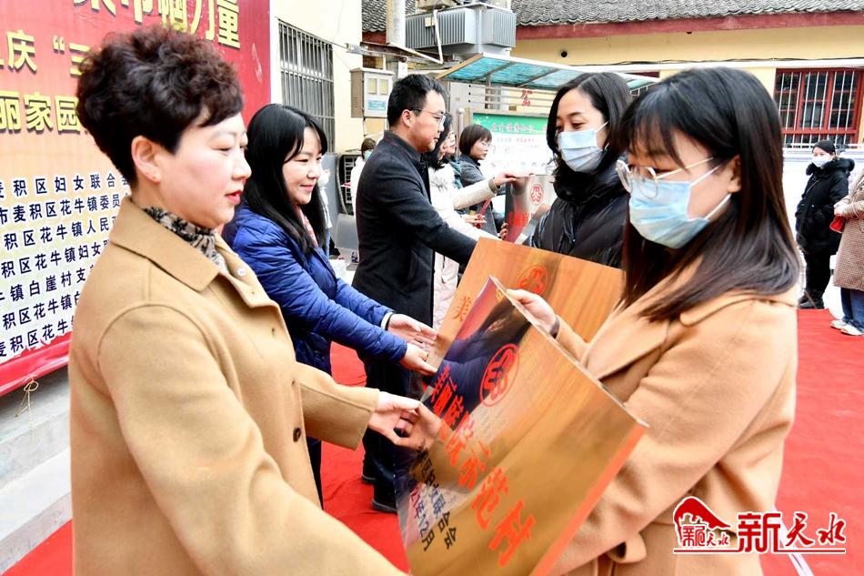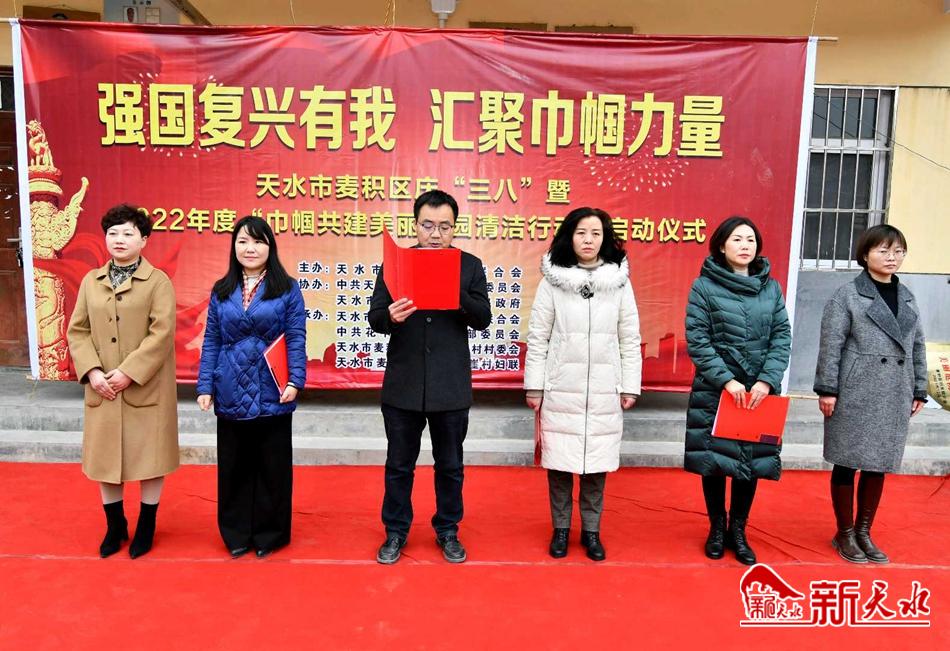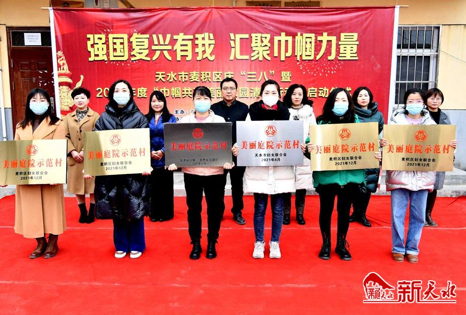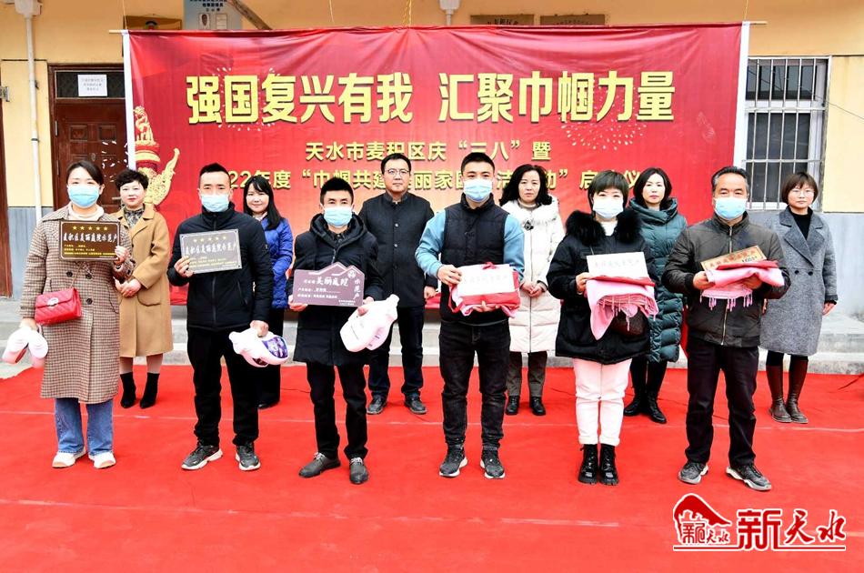新天水讯【特约通讯员 窦耀辉】近日,麦积区庆“三八”暨2022年度“巾帼共建美丽家园清洁行动”启动仪式在花牛镇白崖村举行,发出麦积区“巾帼共建美丽家园清洁行动”倡议,为荣获省、市、区级的18个美丽庭院示范村、15户美丽庭院示范户、3户“最美家庭”分别授牌并发放了礼遇包。