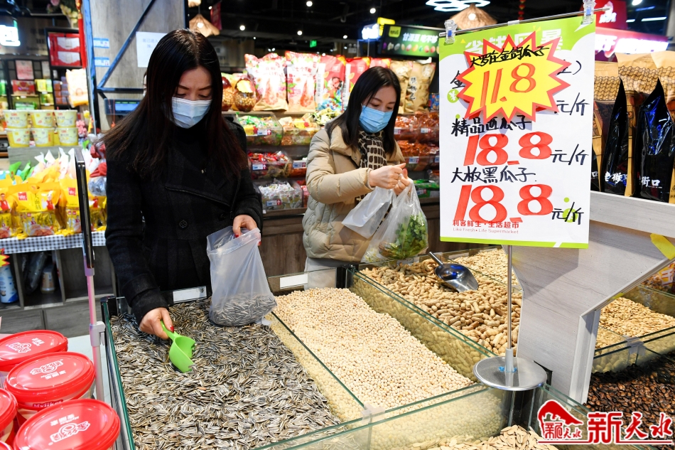3月2日,市民在一超市购买蚕豆、瓜子。