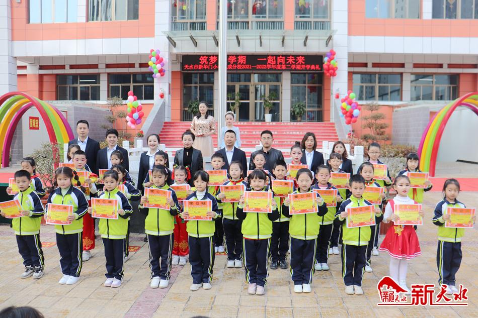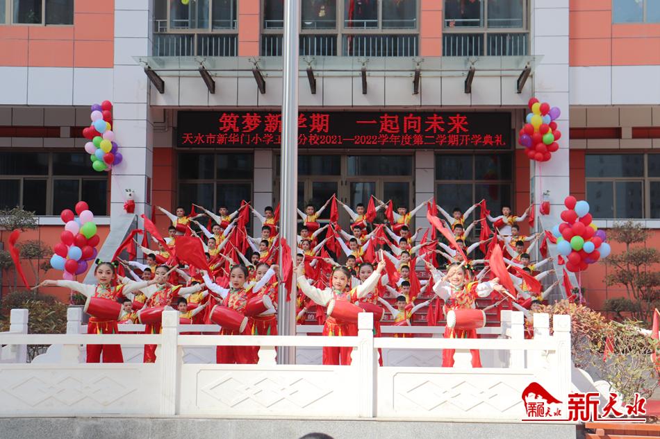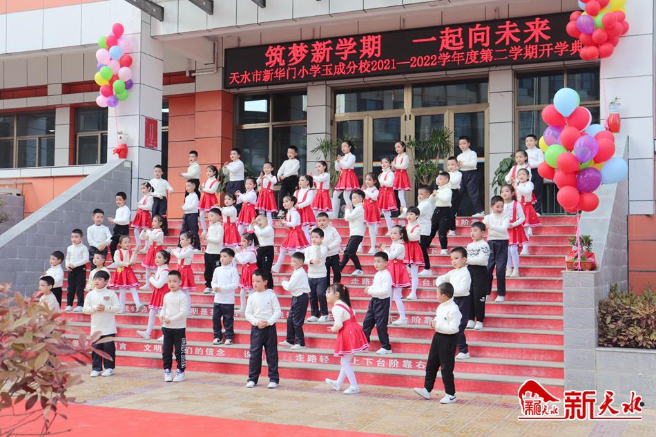 新年伊始,万象更新。随着新学期的开始,天水各中小学纷纷举行丰富多彩的开学活动,以良好的精神状态迎接新学期,开启新征程,一起向未来。图为天水市新华门小学玉成分校举行“筑梦新学期 一起向未来”开学典礼活动。