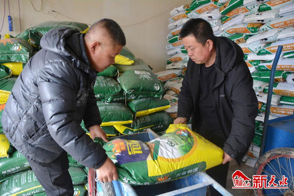 在丰望乡柏树村股份经济合作社的农资销售点上,村民们也都忙着搬运化肥。