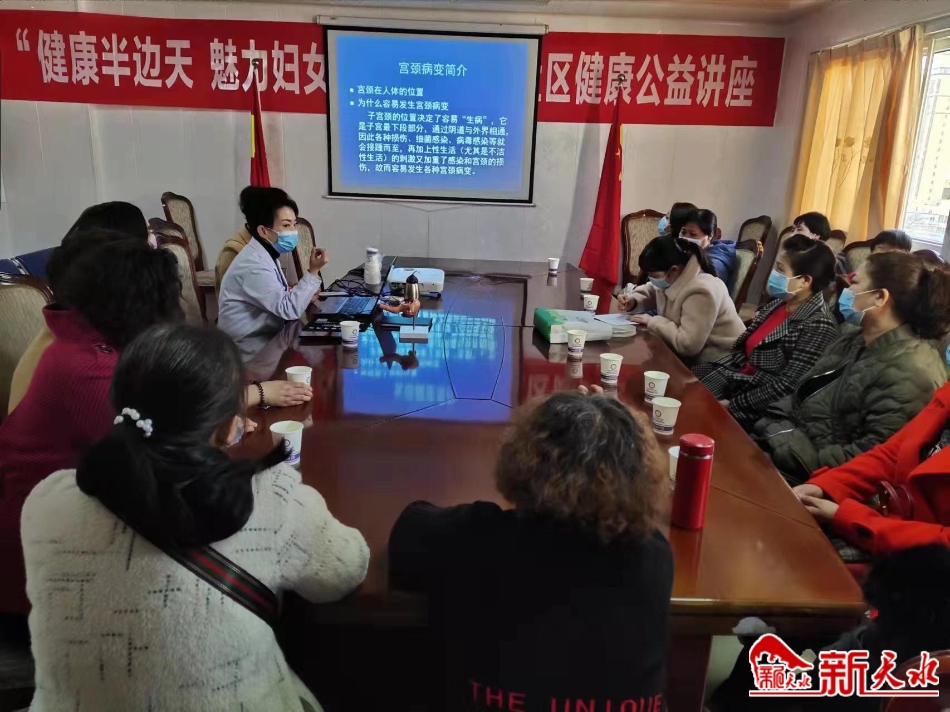 新天水讯【记者王晓华】3月4日下午,在“三八”妇女节来临之际,秦州区中城街道绿色市场社区在退休医师医院会议室举办“健康半边天,魅力妇女节”健康公益讲座。参加本次活动的有绿色市场社区妇联执委、辖区妇女代表等。