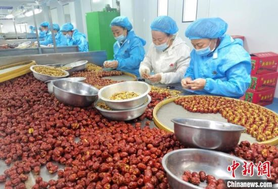 在风味核桃车间,现代化机器取代人工。许威提及,今年8月左右可能会接到大量风味核桃订单。比邻的枣夹核桃车间内,工人们忙碌在分拣、组合、烘干的流水线上。负责组合区的陈芳红认为,这一步是枣夹核桃“换装”最难步骤之一,需在一堆核桃仁中调出合适大小进行搭配。