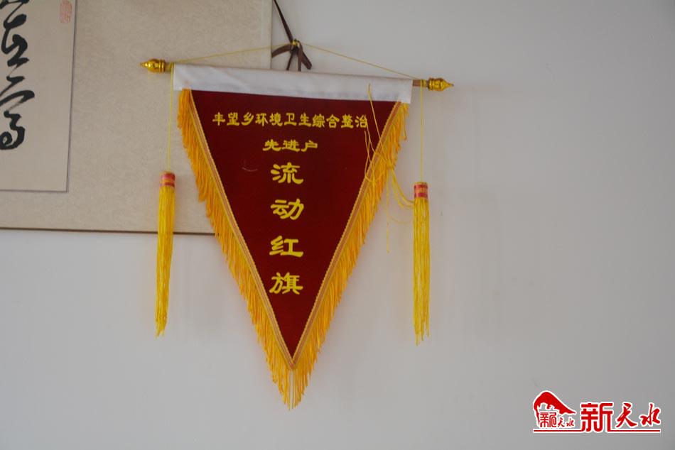 记者看到,王旭珍家的这面“流动红旗”上印有“丰望乡环境卫生综合整治先进户”字样,被悬挂在主屋显眼位置,环顾整个屋内,各种物品摆放有序,就连屋外的院子也被打扫得别致又干净。