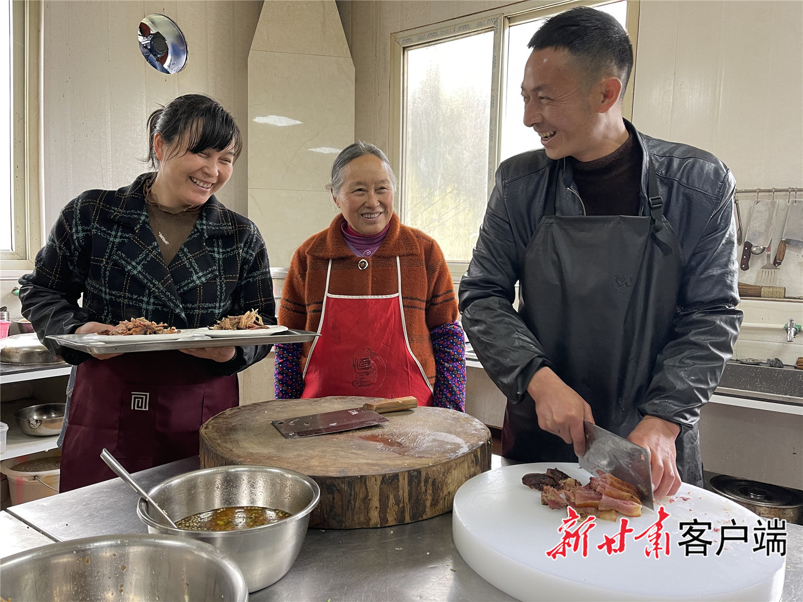 文县碧口镇群众开起农家乐吃上旅游饭,一家人在后厨忙着招待外地游客。
