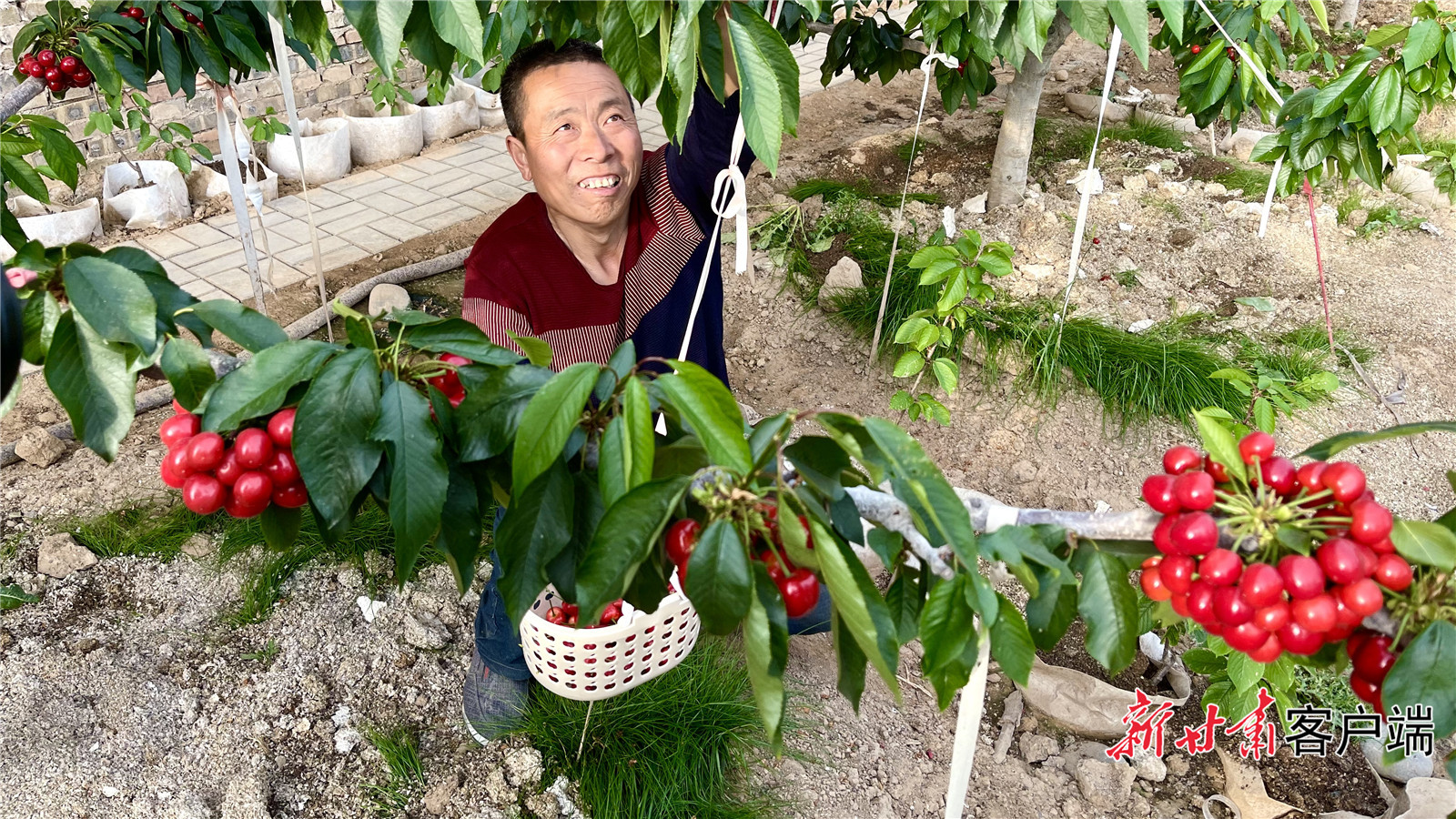 甘谷县的樱桃大棚里,果农正在采摘。