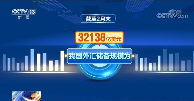 国家外汇管理局最新数据显示,截至2月末,我国外汇储备规模为32138亿美元。