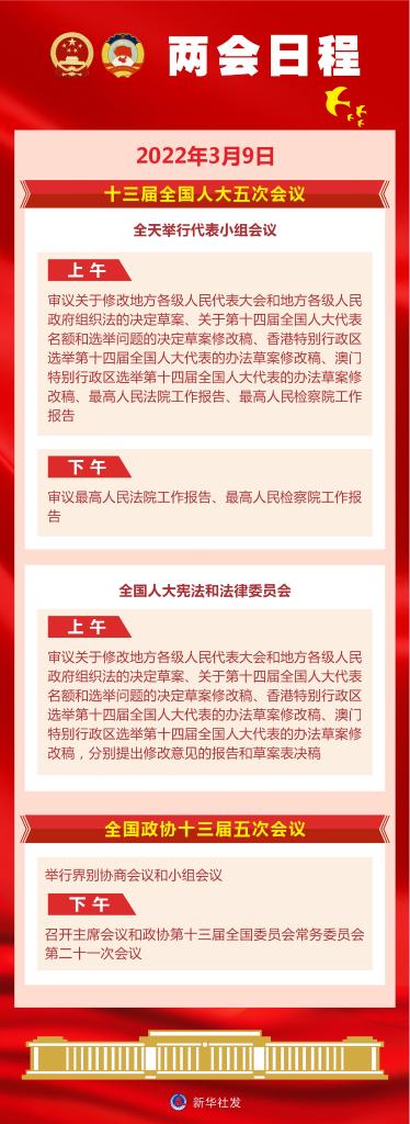 两会日程|3月9日:人代会审议“两高”工作报告等 政协举行界别协商会议和小组会议