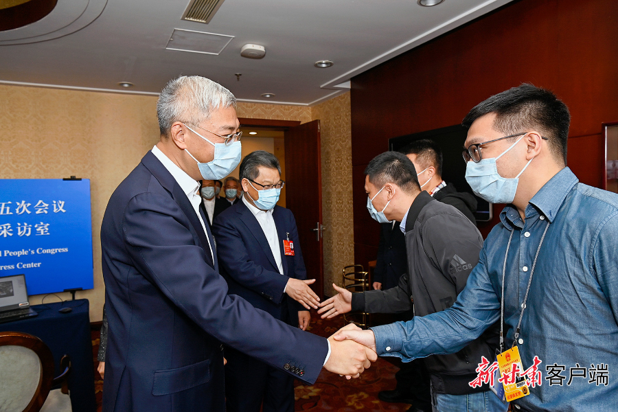 3月8日,甘肃省委书记、省人大常委会主任尹弘,省委副书记、省长任振鹤在甘肃代表团驻地看望参加全国两会报道的新闻工作者,向中央媒体和省内主要媒体工作者的辛勤付出表示感谢。新甘肃·甘肃日报记者 孟捷