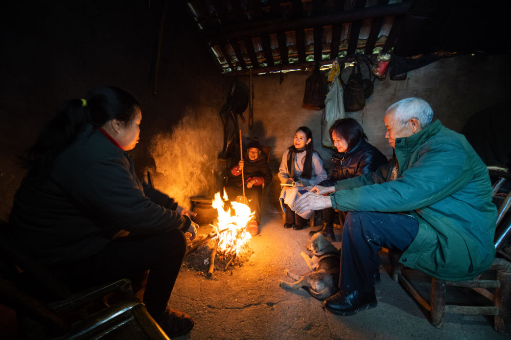 在湖南省常德市鼎城区草坪镇枫林口村,全国人大代表杜美霜(右三)入户与当地村民交流(2月16日摄)。新华社记者 陈思汗 摄