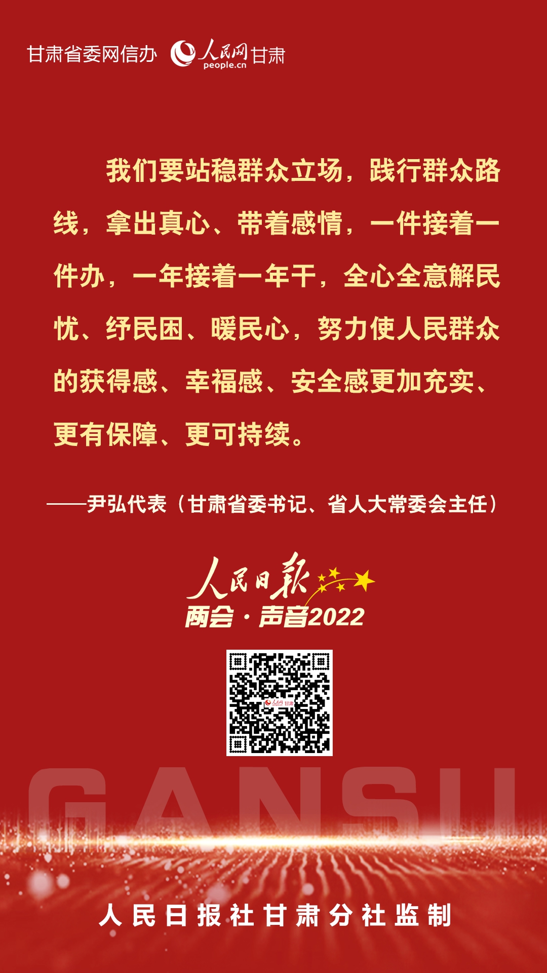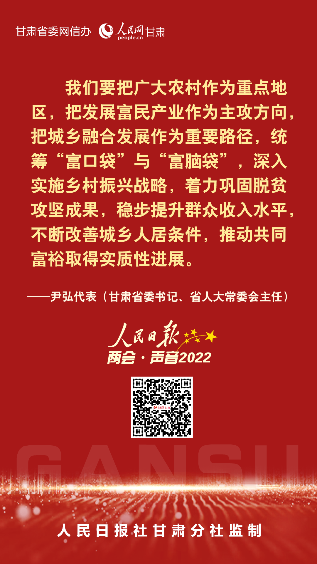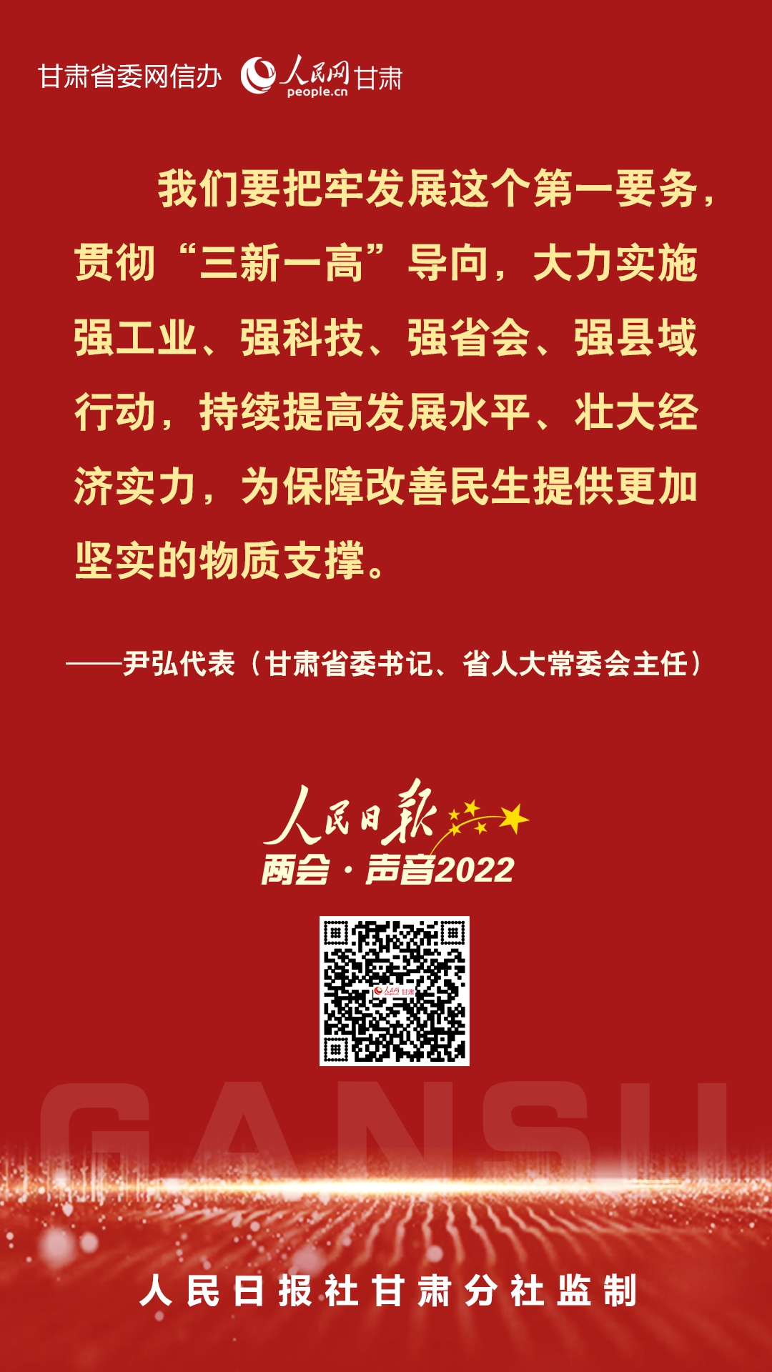 进入新时代、迈上新征程,甘肃人民对美好生活的向往更加强烈,改变家乡面貌、实现富民兴陇的愿望更为迫切。3月10日,全国人大代表,甘肃省委书记、省人大常委会主任尹弘在《人民日报》上发出两会·声音。