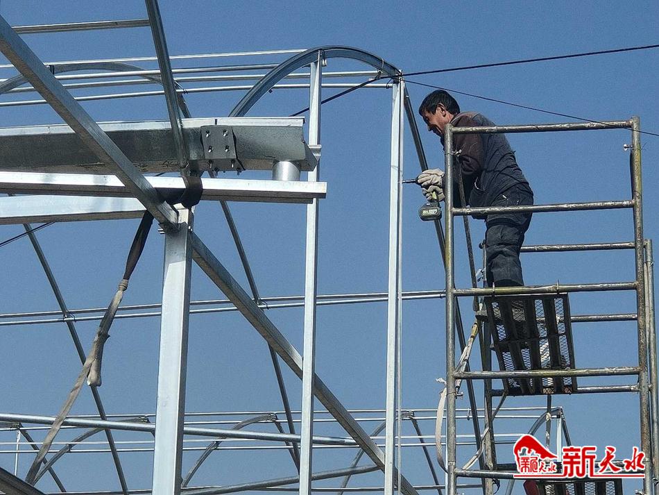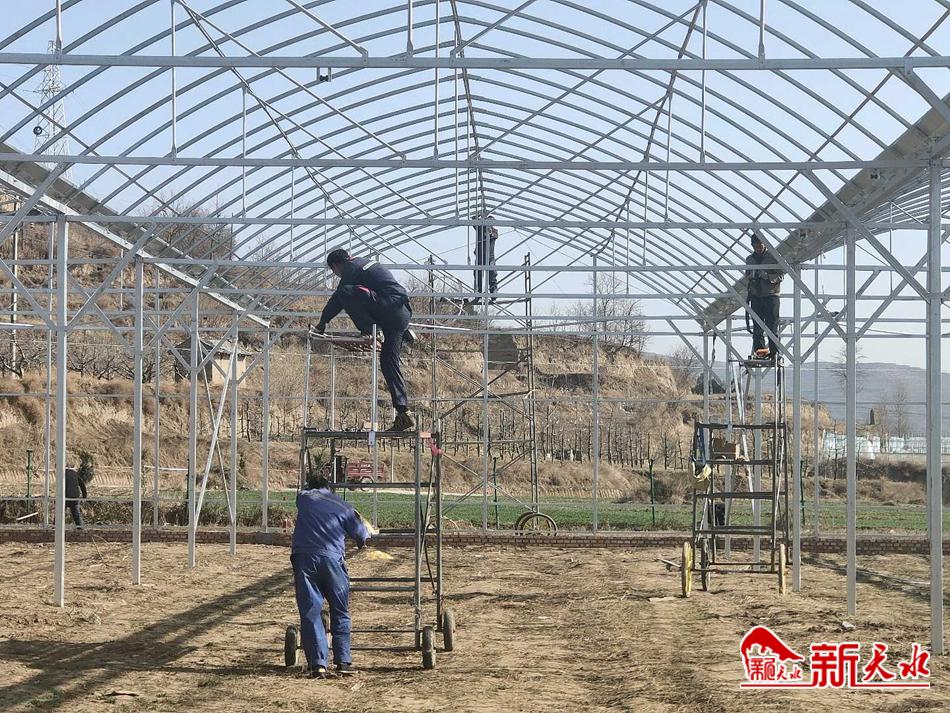 新天水讯 开春以来,在秦州区天水镇天水村设施农业产业续建项目基地,工人们正在砌边墙、立骨架,建设钢架大棚,施工现场一片繁忙景象,呈现出赶早、抓早、拼早、动快的忙春图。