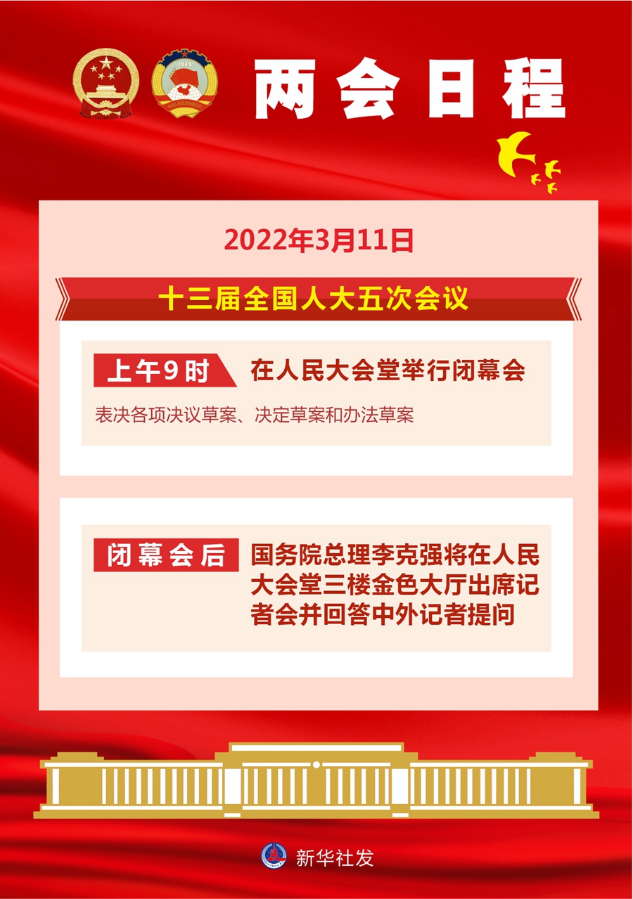 【两会日程】3月11日:十三届全国人大五次会议闭幕 李克强总理出席记者会