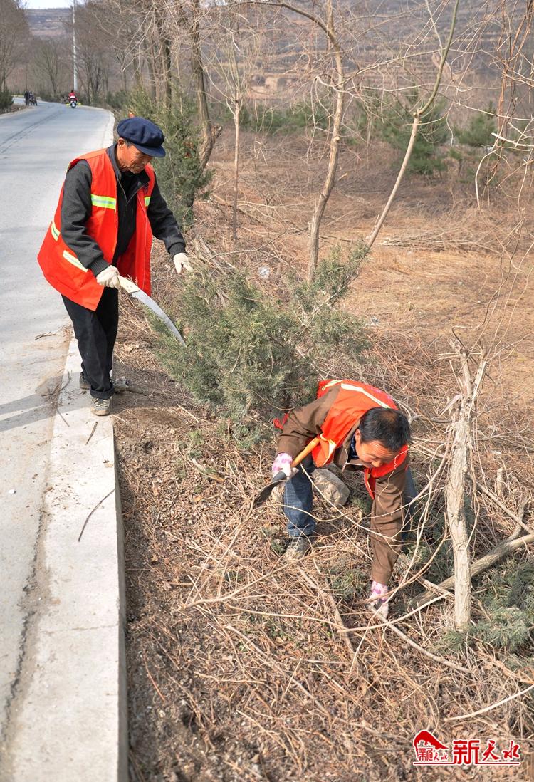 3月10日,志愿者在秦州区皂郊镇皂牡公路店镇段整修行道树间的空地。近日,秦州区皂郊镇在整治村容村貌的同时,对通乡公路、村村通主干道两边的行道树进行修剪、对行道树间的空地进行整治,清除杂草、填平沟壑后播种鲜花种子,待到花籽生根发芽后,公路两边的面貌将会变得更美。