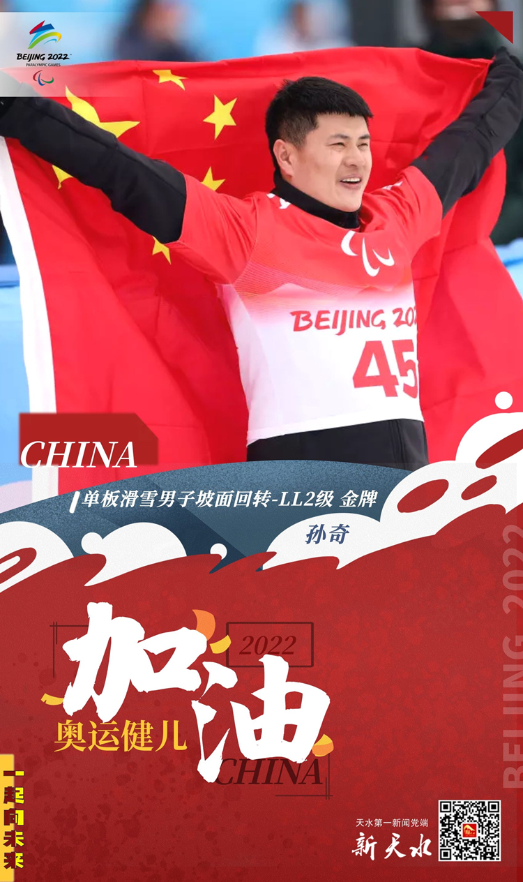 新天水微海报 | 第14金!单板滑雪男子坡面回转LL2级孙奇夺金