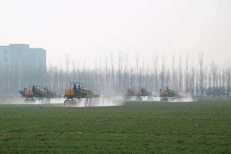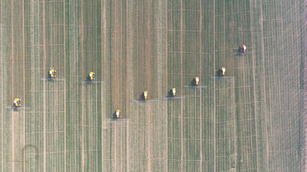 又到一年春耕备播时,3月10日,在石家庄市藁城区梅花镇梅花村的万亩示范田内,机器隆隆作响,12台自走式喷雾机一字排开,正在给小麦喷洒除草剂,每台自走式喷雾机能作业500亩,12台机器一天作业6000余亩,该示范田预计2天完成打药工作。据了解,今年春耕,藁城区“以机代人”,处处透着“科技范”,全区49.8万亩小麦预计10天打药完毕。农机在春耕中“大显身手”,机器就能代替人完成打药、播种等农业生产任务,省时省工又省力。为确保小麦丰产丰收,藁城区立足“早”行动,落实“促”措施,围绕“穗数、粒数、粒重”三要素,采取有效措施,促进分蘖成穗和穗分化,攻穗数、保粒数、增粒重。(光明日报全媒体记者耿建扩 陈元秋 通讯员郭继聘 秦梦凡 )