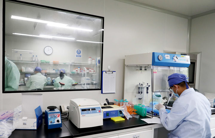 2021年9月6日,新冠流感联检试剂盒在上海投产分发,这是工作人员在实验室内进行产品验证。新华社记者方喆 摄
