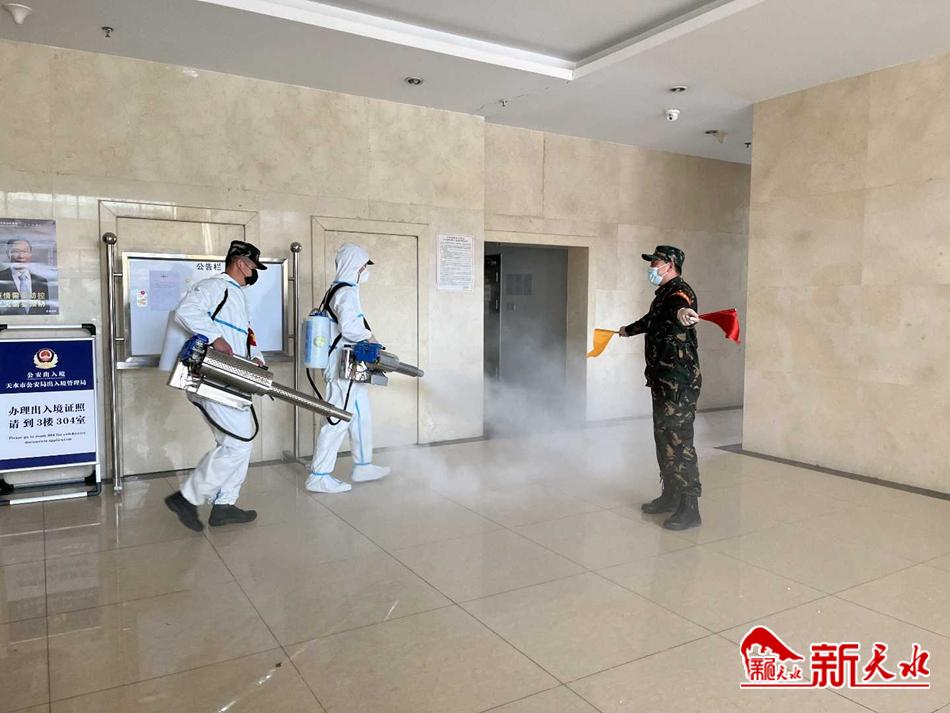 天水市政务中心办公区及七里墩天河D座办公区每日有近3500多名上下班职工及来往办事人员,为落实“外防输入、内防反弹”的防控策略,天水市机关事务服务中心疫情防控措施再次升级,要求凡是进入大厅办事人员必须“扫码”(“行程码”和“健康码”),做好“三件套”(佩戴口罩、测量体温、消毒),做到“一登记”(姓名、体温、家庭住址、身份证号、电话),天水市退役军人支援服务队定期为集中办公区做好消杀工作,确保所有人员健康安全。