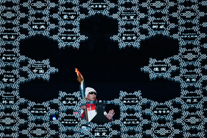 这令人动容的一幕,将奥林匹克精神体现得淋漓尽致:火炬手只要心中有光,即便看不到光明,也不会放弃对光明的探索。正如人类即便要面对各种挑战,但也从未停止过对“更快、更高、更强——更团结”的追求。主火炬的火焰虽然微弱,但由“小雪花”组成的“大雪花”却在北京的夜空中晶莹闪亮,每一个参赛代表团的名字紧紧聚拢,描绘着“更团结”的人类未来。