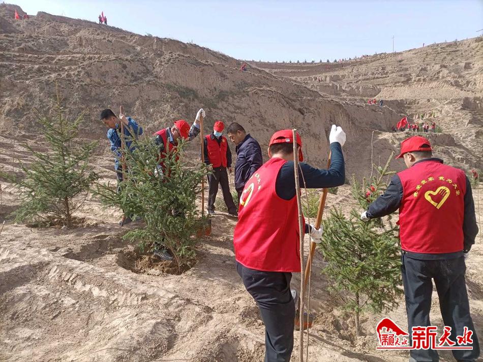 新天水讯 3月15日,武山县市场监管局志愿者们来到位于鸳鸯镇广武坡义务植树活动点,开展义务植树活动。