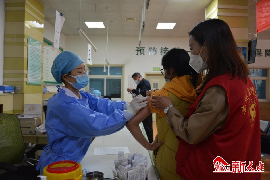 随后,记者在秦州区东关社区卫生服务中心看到,疫苗接种工作正在有序进行中,社区协管员刘大风、万涛穿着红马甲,戴着小红帽,行走在接种现场维持着秩序。