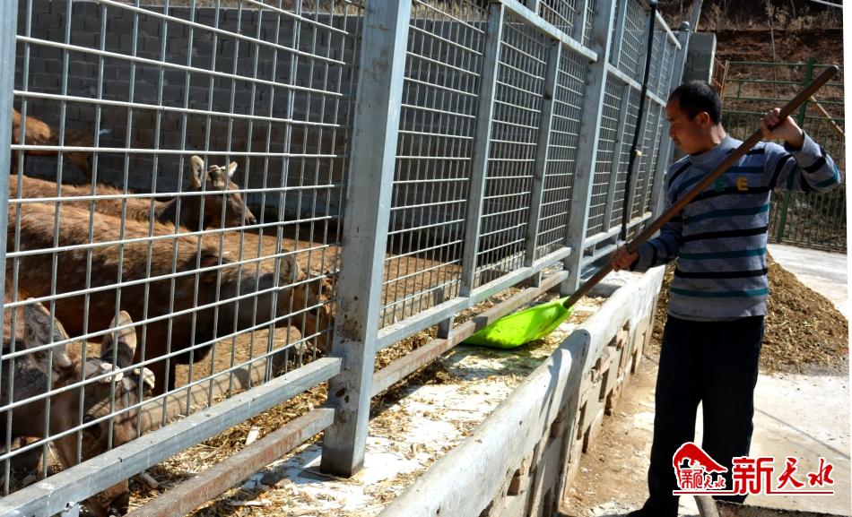 工人党泉周在基地务工已经有3个年头了。党泉周是张家川县平安乡水泉村的村民,以前家里也搞养殖,主要是养牛为主。刚来基地时,他对养殖梅花鹿还是个“门外汉”。“管理鹿舍是第一次,没有什么技术经验,每天就是跟着东北的技术人员学习。”党泉周说,通过不断学习,如今他管理起鹿场已经是“轻车熟路”了,“每天定时给梅花鹿添草料、饮水,打扫圈舍,如果有鹿生病了需要注射药物,我自己也能搞定”。