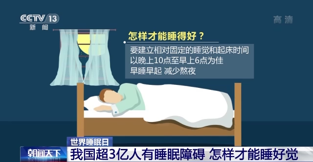 今天(21日)是第22个“世界睡眠日”,今年世界睡眠日的主题是:优质睡眠,开心益智。据中国睡眠研究会等机构的研究显示,目前我国有超3亿人存在睡眠障碍。怎样才能睡个好觉?来听听专家的建议。