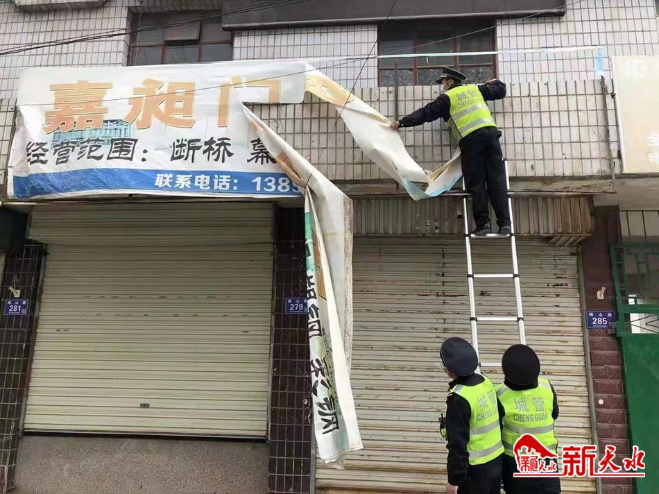 秦州区执法局七里墩中队拆除破损门头广告
