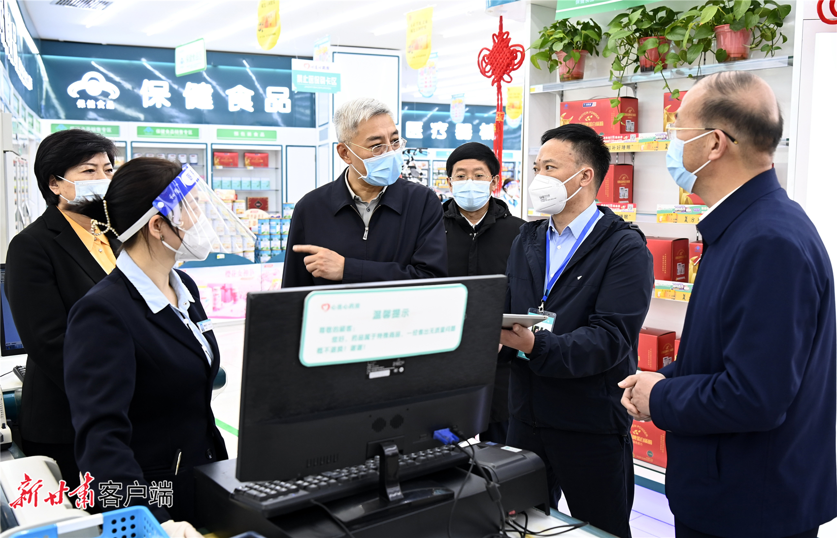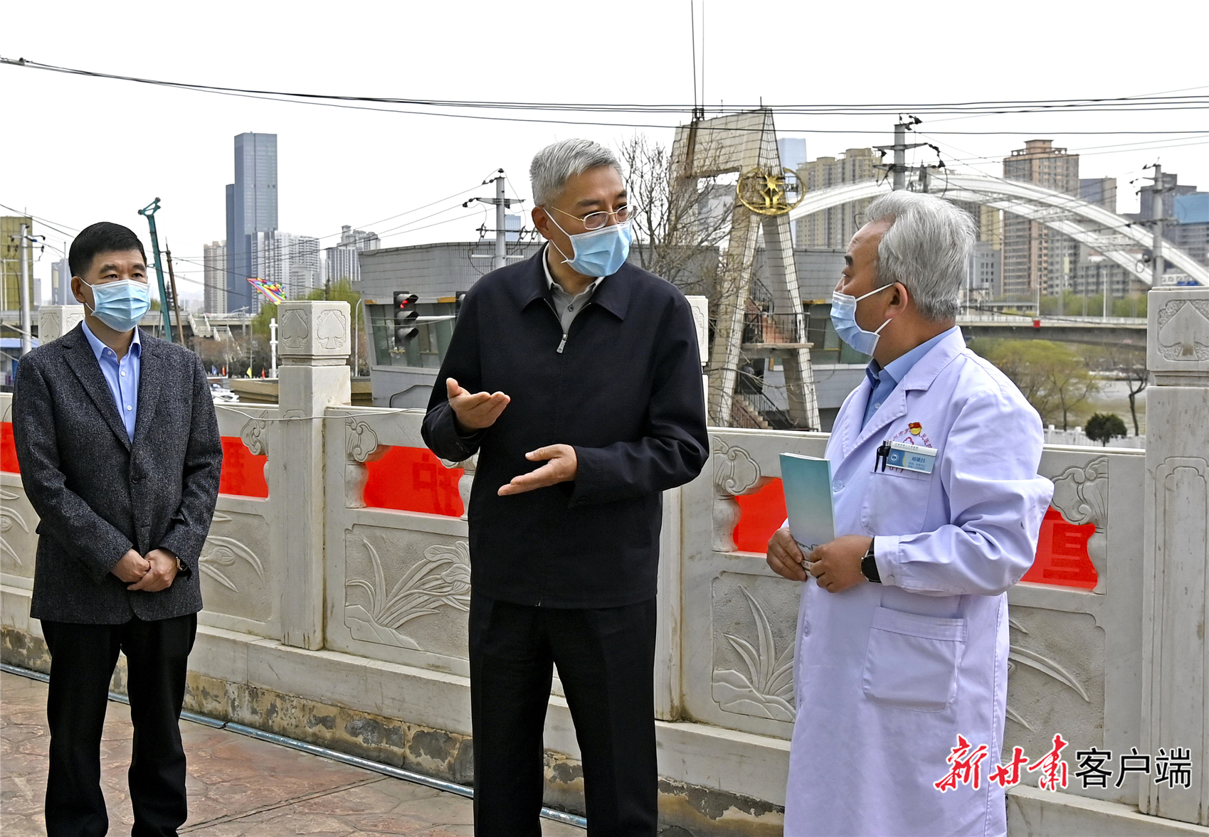 3月21日,省委书记、省疫情联防联控领导小组组长尹弘在兰州市城关区蔬菜瓜果批发市场、兰州市第二人民医院、心连心医药广场调研指导疫情防控工作。新甘肃·甘肃日报记者 高樯