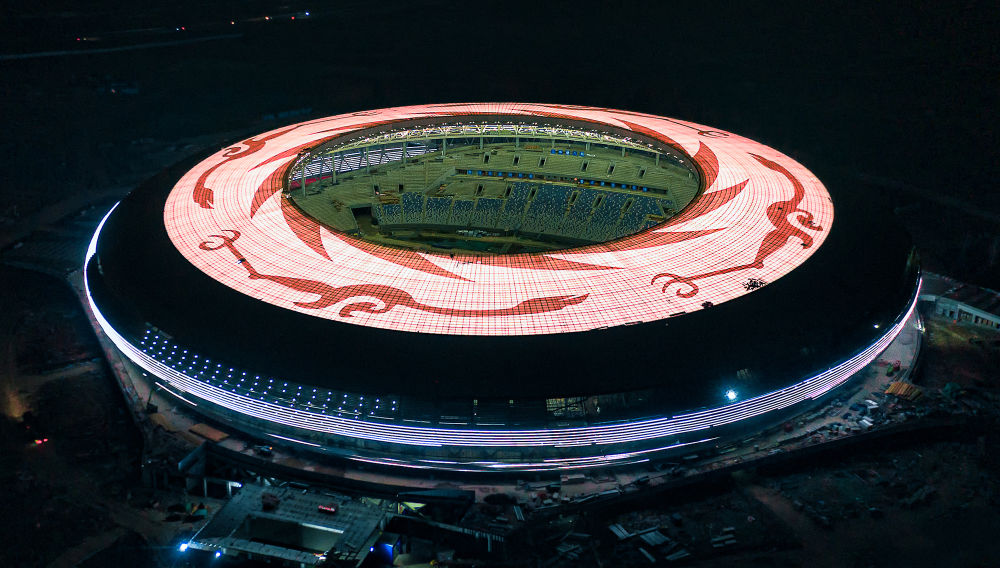 2021年1月1日的成都东安湖体育公园。这里将承办成都大运会的开幕式。新华社发(嘉楠摄)