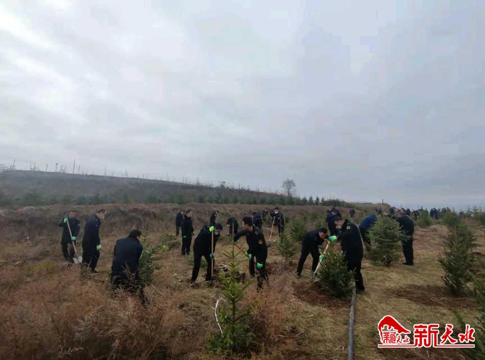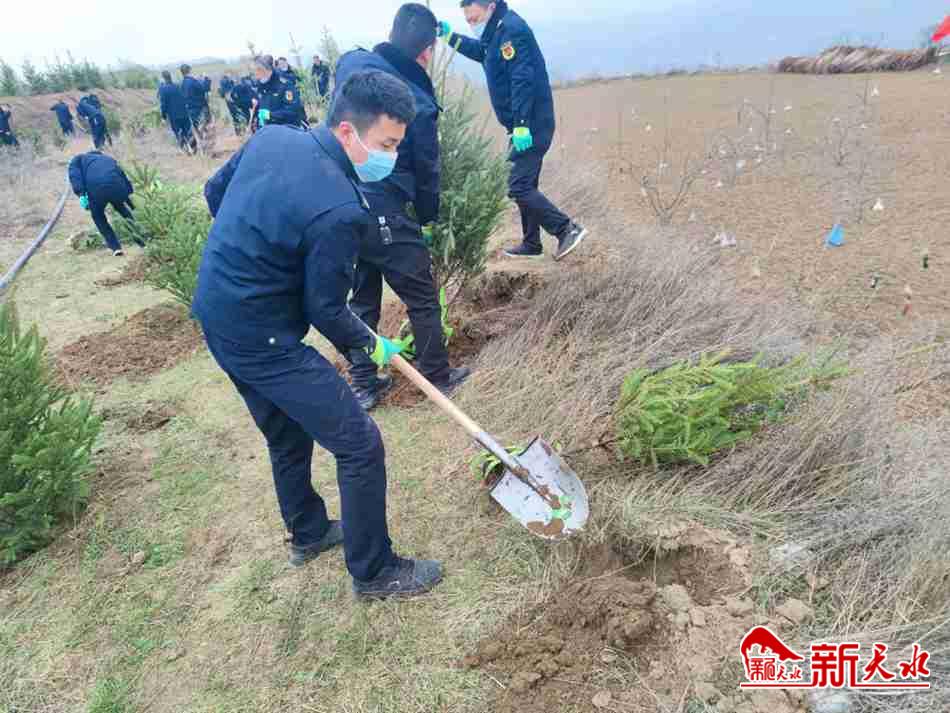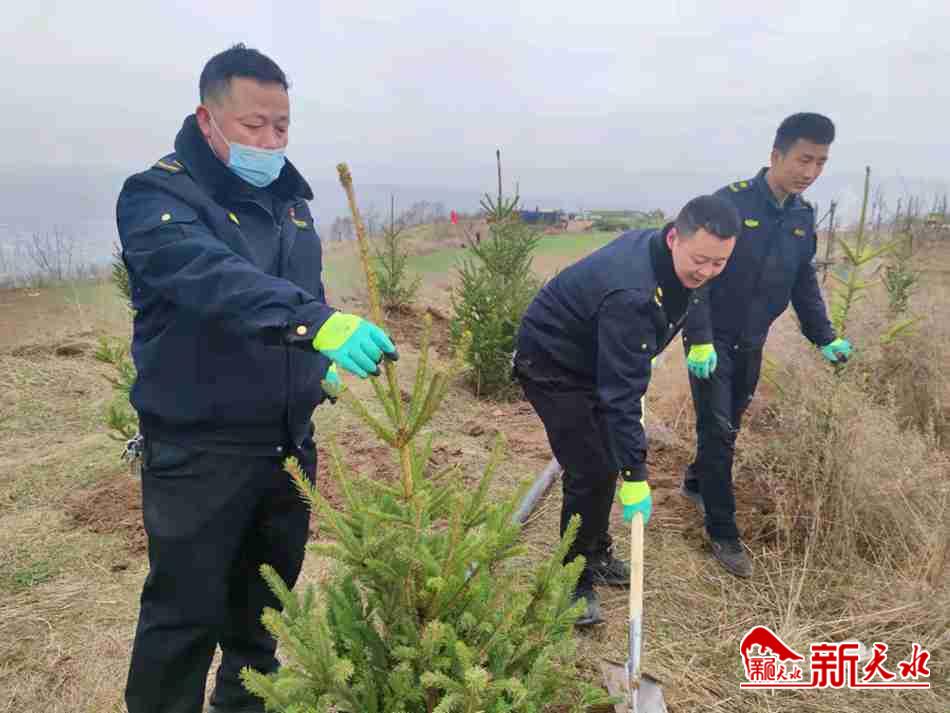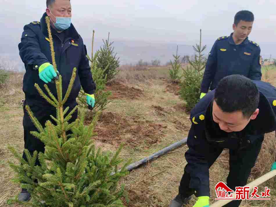 阳春三月,春暖花开,又是植树好时节,3月22日上午,在局里的统一组织下,玉泉中队干部职工,到绣经山省级森林公园东台梁开展义务植树活动。大家通过挖坑、栽树、浇水、压地膜,圆满的完成了任务,此次植树活动共种植松树苗30余棵。新天水通讯员 靳雪萍 摄