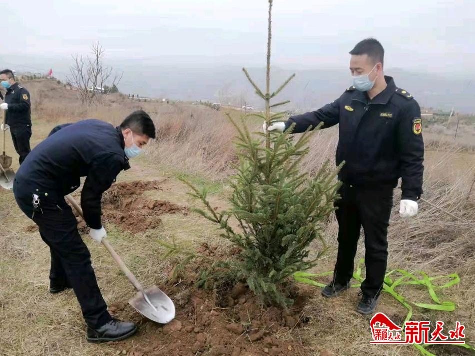 新天水讯【通讯员朱学勇】3月22日,秦州区执法局天水郡中队干部职工参加义务植树活动,为秦州大地再添新绿。