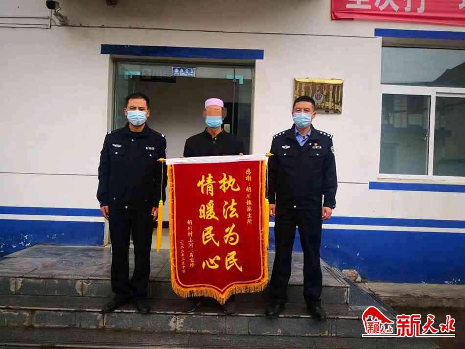 新天水讯 3月21日,春雨淅淅沥沥,大地一片新绿。家住张家川县的马某来到张家川县公安局胡川派出所,送来一面印有“执法为民、情暖民心”的锦旗,对民警暖心救助其子表示感谢。