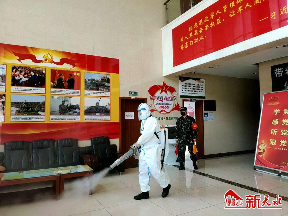 3月22日,针对政务中心工作人员和办事群众密度大、流动强的特点,为做好该区域防控工作,天水市机关事务服务中心联系天水市退役军人志愿服务队再次对政务中心集中办公区进行了全面消杀防疫工作,为集中办公区提供一个安全健康的工作环境。志愿者们表示,他们虽是退役军人,但退役不褪色,我们就想力所能及为打赢这场没有硝烟的疫情防控战贡献一份力量。