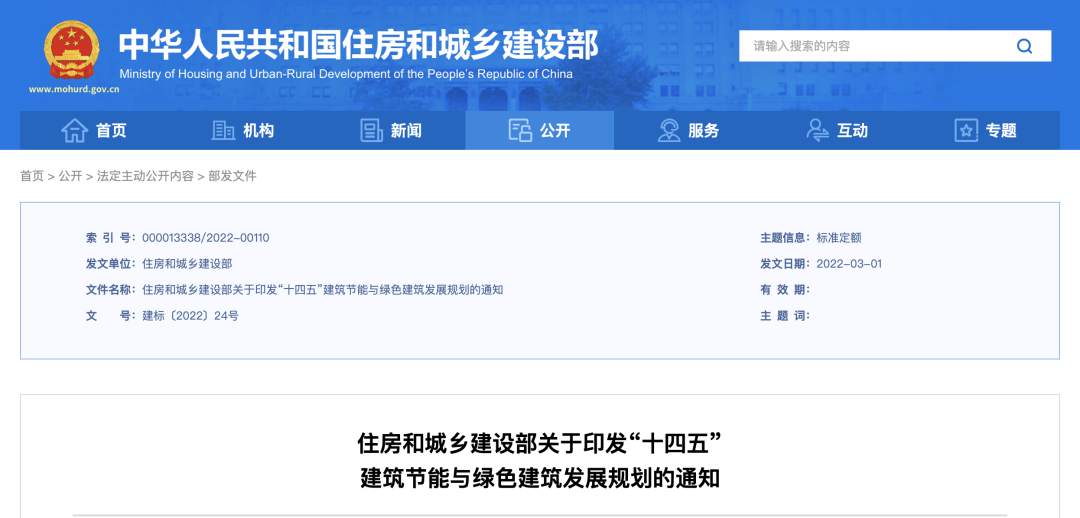 3月11日,住房和城乡建设部官网发布《“十四五”建筑节能与绿色建筑发展规划》提出,到2025年,城镇新建建筑全面建成绿色建筑,建筑能源利用效率稳步提升,建筑用能结构逐步优化,建筑能耗和碳排放增长趋势得到有效控制,基本形成绿色、低碳、循环的建设发展方式,为城乡建设领域2030年前碳达峰奠定坚实基础。