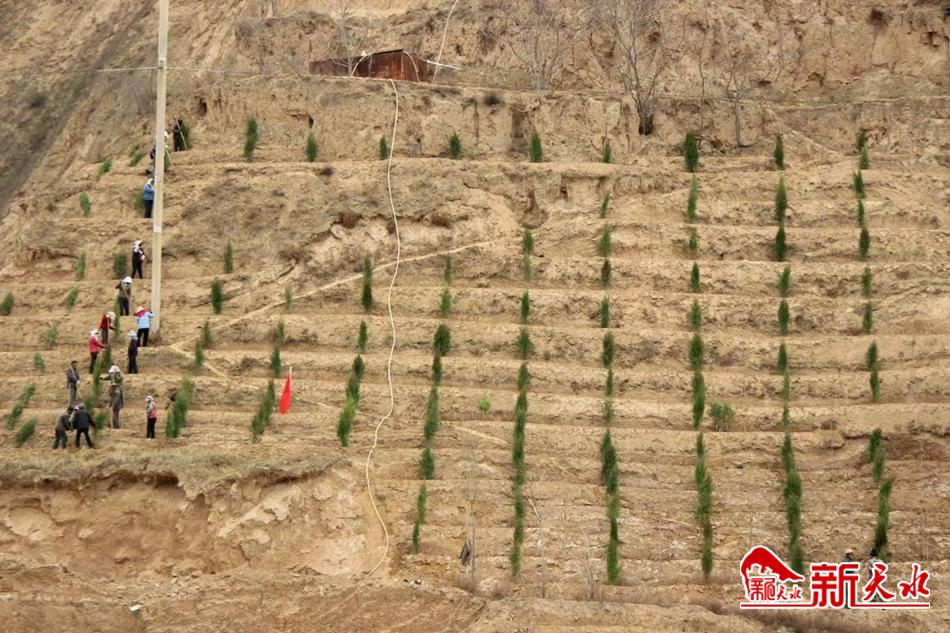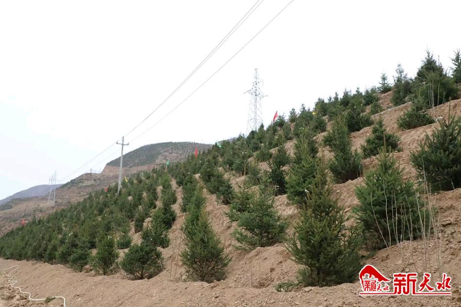 为了确保绿化工程的质量、进度,县上择优选择专业绿化工程队,在水帘洞景区10公里的旅游公路两侧,栽植胸径8厘米的法桐,高2米树冠1米的连翘、丽桃、开花石榴等高档景观树种2.5万余株,建成高低搭配、季相分明、错落有致的生态“观景长廊”。同时,争取实施三北防护林项目1050万亩,规划在旅游公路东侧荒山绿化造林10500亩,根据地形地势,采取沿等高线开挖水平带、穴状植树坑整地方式,栽植云杉、火炬树、油松、丁香等树种,搭配爬山虎等观赏性藤本植物,实现针阔混交。为后期管护,将配套修建简易蓄水池30个,新修管护道路20公里,为常态化浇水和管护提供了便利。
