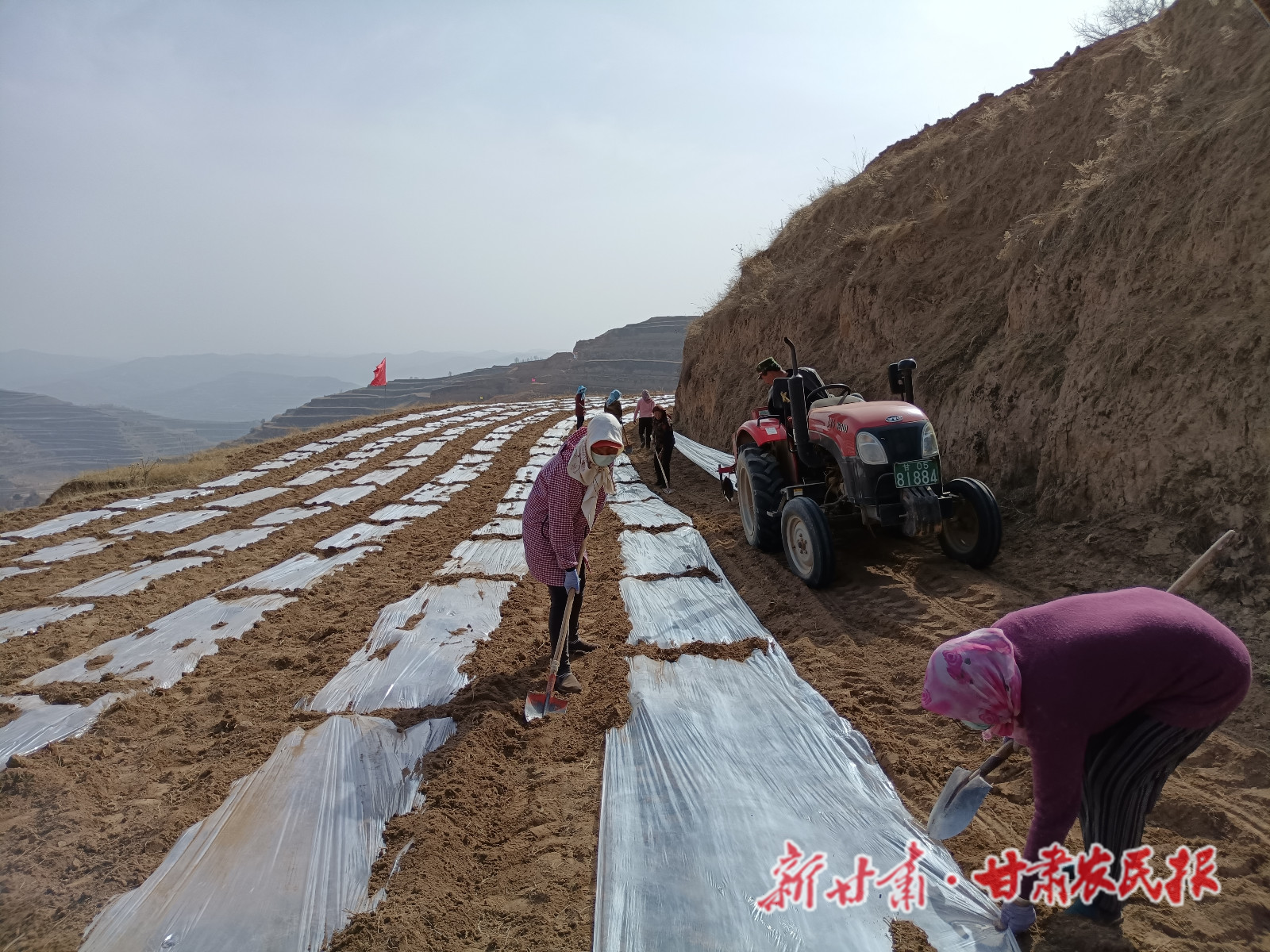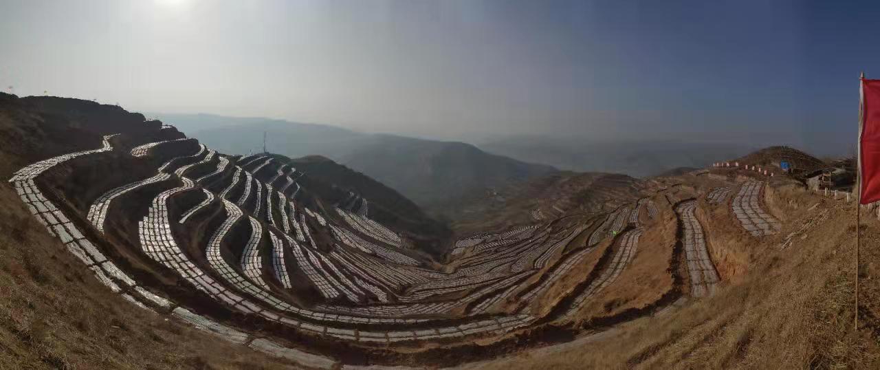 完成全膜双垄铺膜的大弯梁流域一角。许文龙摄