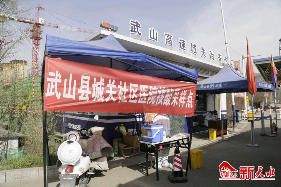 新天水讯【通讯员 张燕燕 车彤瑶 董世雄】3月24日,武山县城区设置县人民医院、疾控中心、妇计中心、社区卫生服务中心、城关卫生院、高速路口、火车站出口、安居园门口、庙峪桥口、人民广场共计10个核酸采样点。进一步强化提升全县核酸检测和常态化疫情防控工作,坚决阻断新冠肺炎疫情传播风险,确保人民群众生命健康安全。