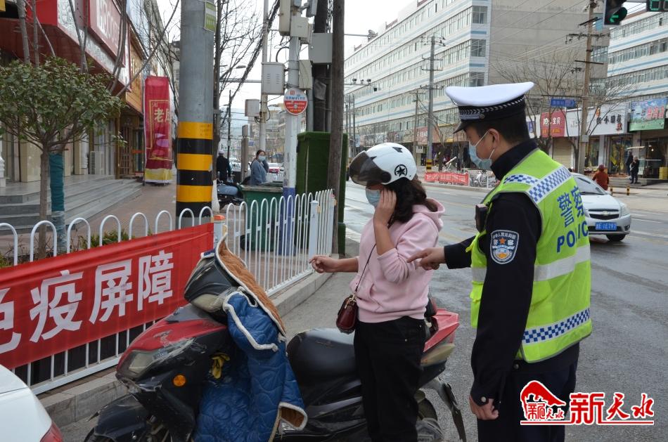 在城区,执勤民警在各岗口和疫情防控点利用小喇叭向群众做疫情防控防护宣传。除了做好一线疫情防控外,还开展了“一盔一带”整治工作,对驾乘机动车不系安全带,驾乘二三轮摩托车、电动车不戴安全头盔的行为进行纠正、劝导和查处,整治与教育相结合,提升驾乘人员的安全意识和法律意识,着力营造“严查、严管”氛围 。
