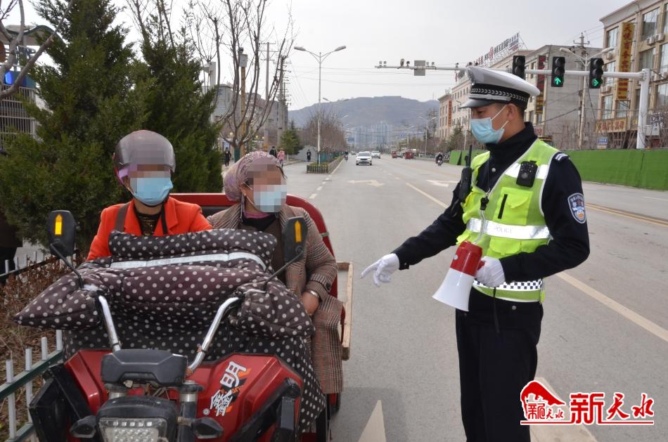 “疫情防控期间,请大家不要扎堆聚集,戴好口罩,做好个人防护。”3月24日,张家川回族自治县公安局交警大队交警带着小喇叭,到各岗口对群众进行防护宣传。