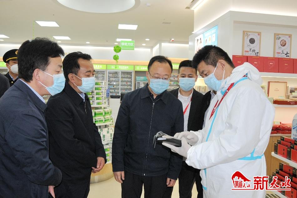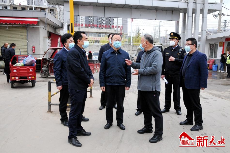 新天水讯【记者童强】3月28日,天水市委常委、常务副市长、市疫情防控保障保供与市场监管组组长贾义翔带领市商务局、市粮食和物资储备局、市市场监管局等部门负责人到秦州区赢池市场、嘉佰乐超市、左邻右舍便民超市、兰天超市、佛慈大药房中心广场店、天水市第一粮库销售店等地,调研督导疫情防控期间市场供应保障工作。