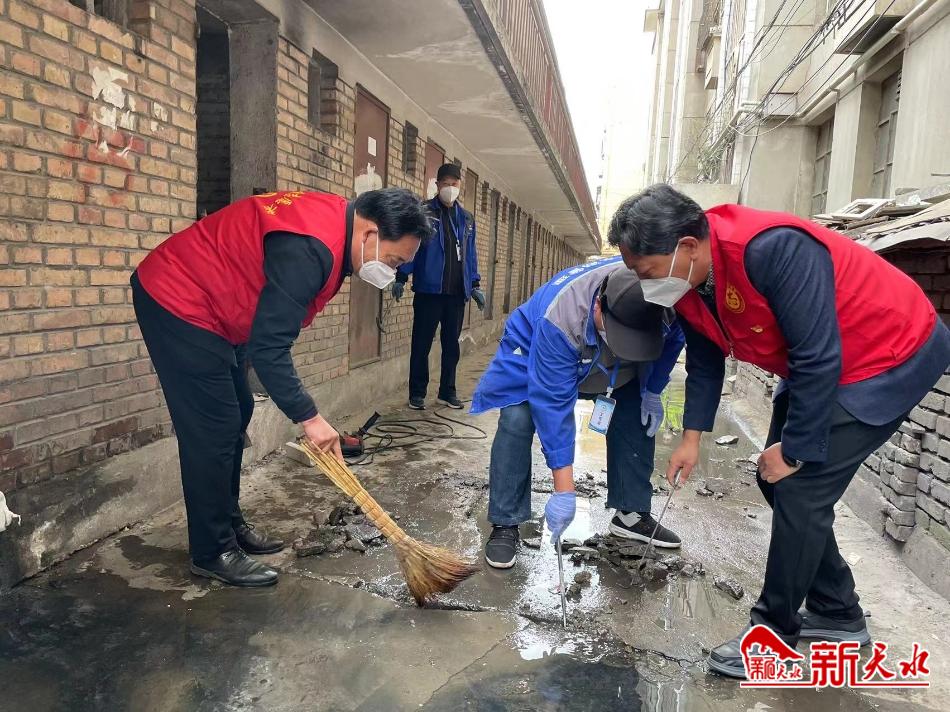 新天水讯【记者蔚军平】秦州区城乡环卫治理中心东关环卫所临时党小组对所包抓的“三无小区”,严格落实各项疫情防控政策,做到疫情防控不松懈,便民服务“不断档”,及时疏通了下水管道,解决了因污水外溢影响环境卫生的问题。