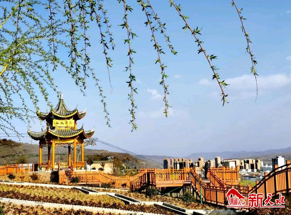 花舞北山、邽山生态园、全民健身公园、轩辕广场被春色点染;居民小区、城区主干道一路繁花,芬芳袭人。