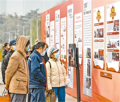 山东省济南市市民在泉城广场观看当地扫黑除恶专项斗争成果展。