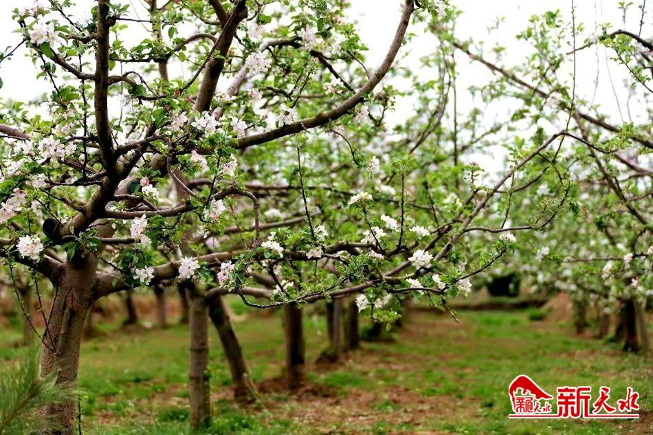 3月正值苹果树发芽开花的时节,在郭川镇庙山梁的苹果种植园内,漫山遍野的苹果树长势喜人,嫩绿的新芽在枝头抽绿,部分开花的树枝散发着阵阵扑鼻的香气,苹果树绵延田间,不仅装扮了村庄,更点亮了群众增收的希望。