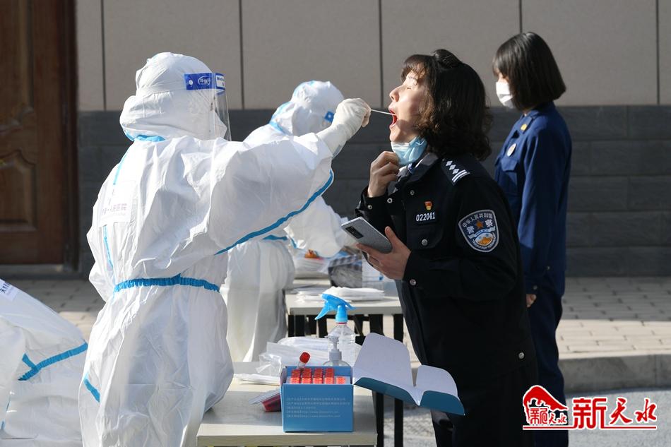 根据疫情防控形势需要,秦州区决定开展重点区域核酸检测,检测范围包括七里墩街道、中城街道、玉泉镇重点区域内居民群众。在秦州区公安分局、枣园村、闫河村等核酸检测采样点,进行核酸检测的人,全程佩戴口罩,间隔1米距离排着队,在现场工作人员的指引下,有序进行检测。