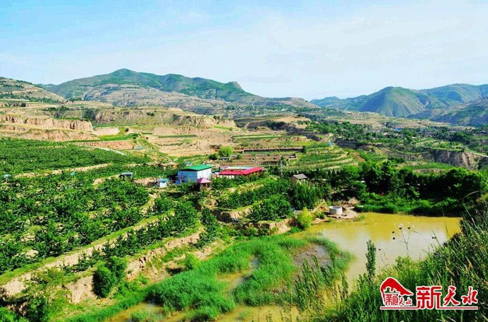 干沟淌清流 荒坡披绿装 梯田绕山走 累累蔬果香