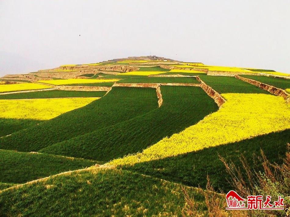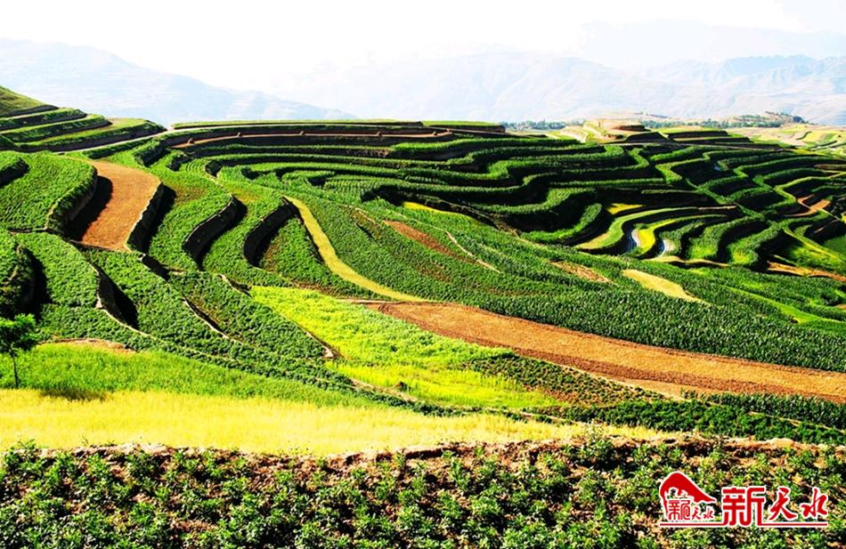 2019年10月1日,举国上下欢庆祖国70华诞,“交响丝路如意甘肃”彩车亮相天安门,惊艳了北京!惊艳了全球。彩车中间的高山梯田油菜花海图案取材于武山县龙台乡油菜花海,武山名字因梯田种植的油菜花海再次在全国叫响。通过修梯田,配套田间道路,引水上山,配套灌溉设施,建设果园,发展高效农业。在新修的梯田上种植全膜玉米+地膜洋芋+菜瓜+豆角等高效作物,不仅推动当地农业产业化的发展,而且大幅度增加了农民收入。龙台镇在新修梯田里大面积种植油菜,在增收的同时还带动了乡村旅游,“游大美武山、赏油菜花海”成为武山县近年来重点打造的乡村旅游品牌。西梁山是武山县高山蔬菜生产核心区,在2000年之前,这里山高坡陡、水土流失严重,农业产量低而不稳。经过多年连续治理,5万多亩陡坡地变成水平梯田,成为当地群众增产增收的富民田。正茬豆角,油菜收获复种豆角、菜瓜,一年两茬收入,让群众的钱袋子鼓了起来。因光照强、无污染,这里生产的架豆条形好、肉质厚,深受各地客商的欢迎,在采摘高峰期,每天有一百多辆来自全各地的车辆客商在这里收购架豆、菜瓜等蔬菜,农户家更是天天进票子。像西梁山一样,经过治理后的武山县张坪梁、桦林沟流域、咀头北山梁、洛门镇牟坪、温泉镇东梁山、马力镇麦卜梁已全部发展为武山蔬菜上山、特色果园发展的核心区、高原夏菜种植的示范区,成为了名副其实的金银山。