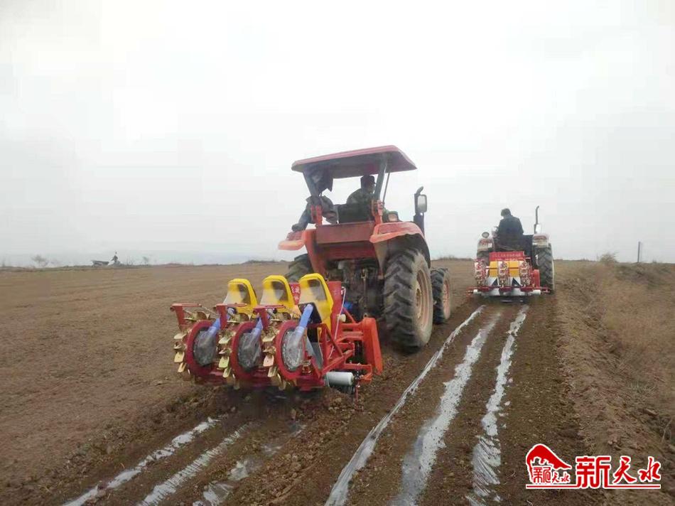 在秦州区杨家寺镇杨家寺村的山梁上,正在开着大型拖拉机进行机械覆膜的秦州区天禾合作社负责人候旭说:“玉米套种大豆这种模式好,今年我们合作社流转了1200亩撂荒地,即将全面完成覆膜,准备全部进行大豆玉米带状复合种植。”